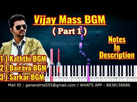 VIJAY MASS BGM Piano notes PART 1 | BGM | Tutorial | keyboard | Karaoke | sheet music | cover